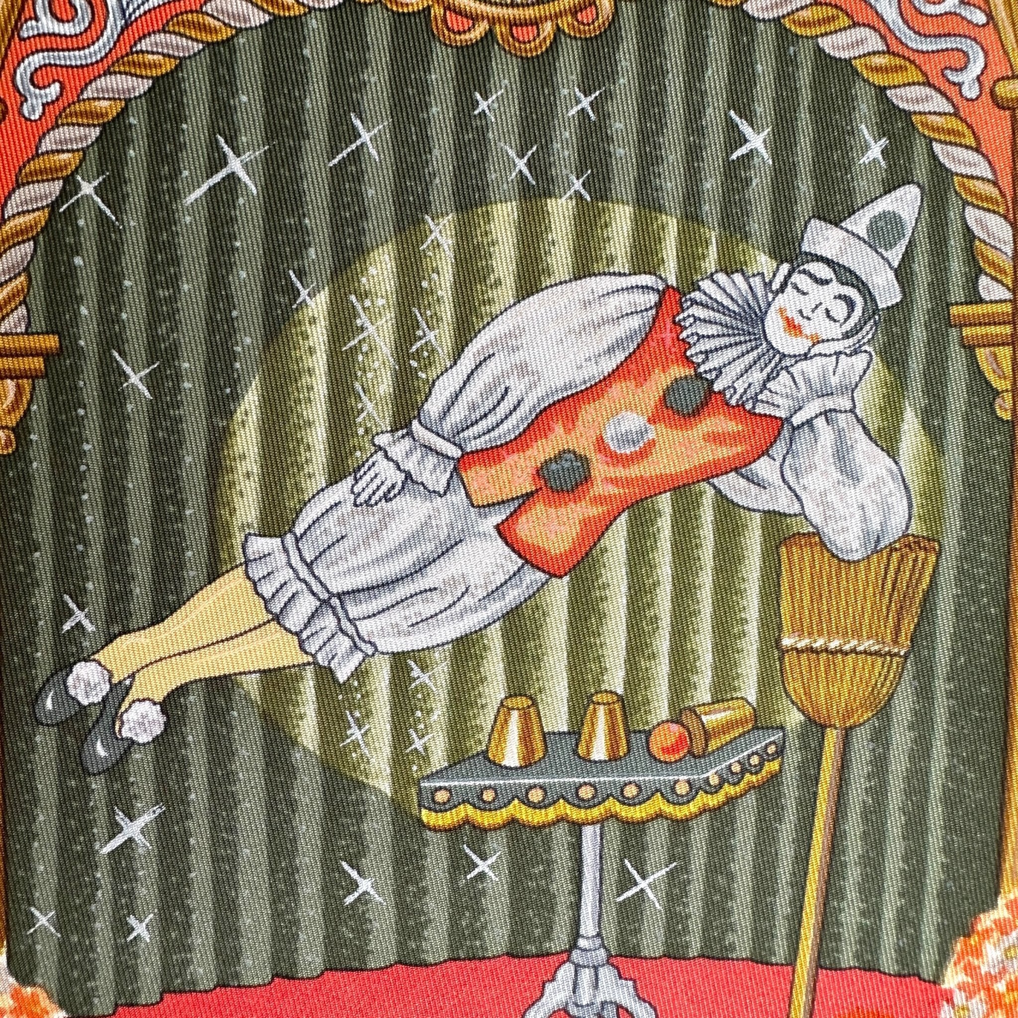 Créé par Claudia Stuhlhofer-Mayr pour la collection Automne-Hiver 1999, La Magie est un carré à la fois surprenant, foisonnant et profondément poétique. La composition mêle humour, illusion et enchantement dans un hommage vibrant à l’univers des magiciens. Réédité une seule fois en 2002, ce modèle est aujourd’hui rare et recherché par les collectionneurs.